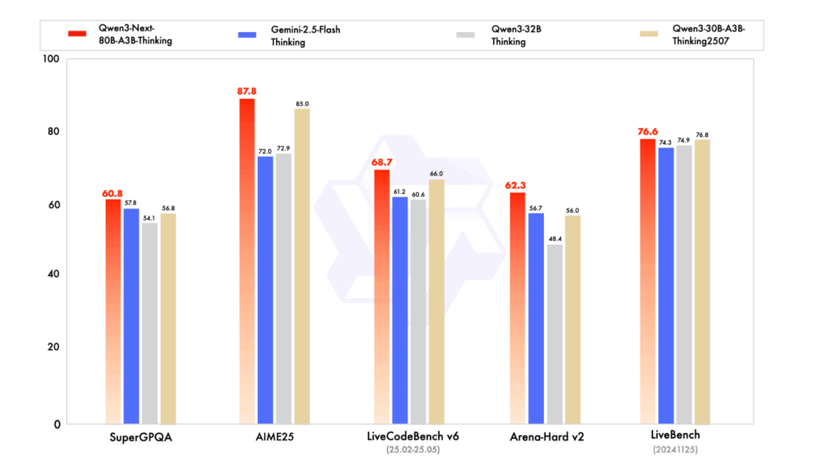 Neben dem Basismodell wurden zwei spezialisierte Varianten veröffentlicht: Qwen3-Next-80B-A3B-Instruct für allgemeine Anwendungen und Qwen3-Next-80B-A3B-Thinking für komplexe Denkaufgaben. Das kleinere Instruct-Modell erreicht laut dem Unternehmen nahezu die Leistung von Alibabas Flaggschiffmodell Qwen3-235B-A22B-Instruct, insbesondere bei sehr langen Kontexten bis 256.000 Tokens. Das Thinking-Modell schlägt laut Alibaba das geschlossene Gemini-2.5-Flash-Thinking von Google in mehreren Benchmarks und nähert sich in zentralen Metriken dem eigenen Topmodell Qwen3-235B-A22B-Thinking an.