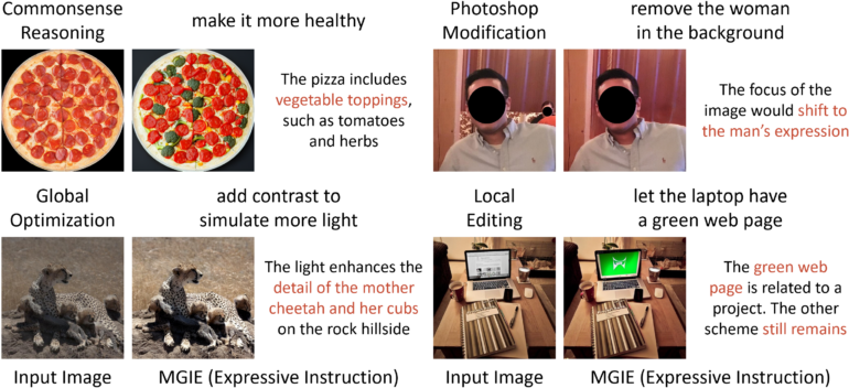 - Apple und Forscher der University of California haben ein Open-Source-Modell für künstliche Intelligenz namens MGIE entwickelt, das Bilder mit Befehlen in natürlicher Sprache bearbeiten kann, von einfachen Farbanpassungen bis hin zu komplexen Objektmanipulationen.