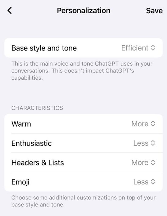 OpenAI ermöglicht Nutzern ab sofort, den Kommunikationsstil von ChatGPT anzupassen. In den "Personalisierung"-Einstellungen lassen sich verschiedene Eigenschaften wie Wärme, Enthusiasmus, die Verwendung von Überschriften und Listen sowie Emojis einstellen. Jede Eigenschaft kann auf "More" oder "Less" gesetzt werden. Zusätzlich gibt es einen Basis-Stil, etwa "effizient" für prägnant formulierte Antworten.