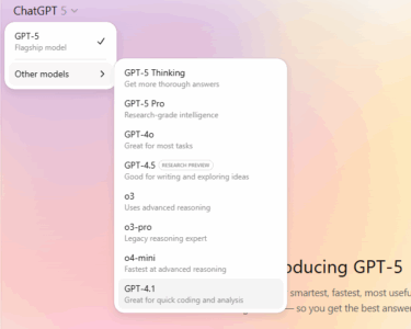 Ab sofort wählt ChatGPT mit GPT-5 automatisch das passende Modell für eine Aufgabe aus – eine hilfreiche Funktion für Einsteiger (wenn sie denn funktioniert).