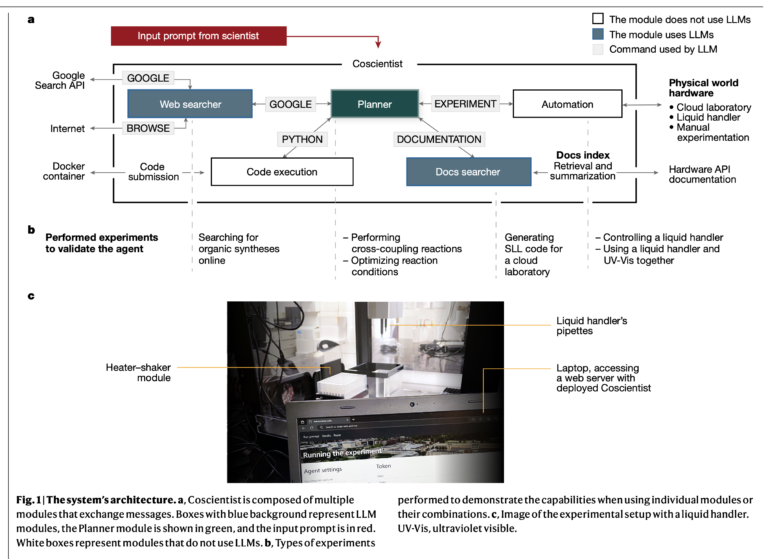 - Forscher der Carnegie Mellon University und des Emerald Cloud Lab haben Coscientist entwickelt, einen auf OpenAI GPT-4 basierenden KI-Assistenten für automatisierte Laborarbeit, der komplexe chemische Experimente selbständig entwerfen, planen und durchführen kann.