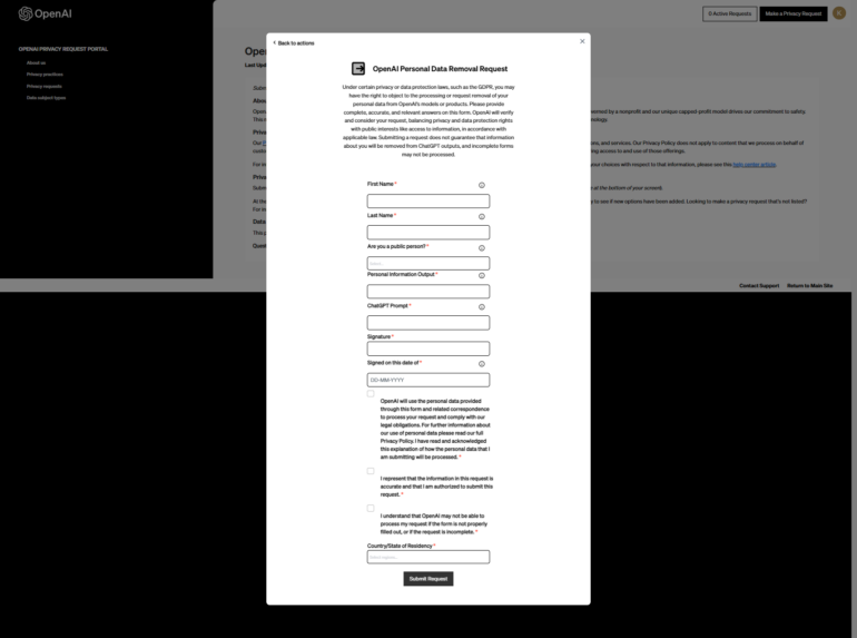 Möglicherweise als Reaktion auf die wachsenden Bedenken hat OpenAI kürzlich ein Formular zur Löschung personenbezogener Daten auf seiner Website eingeführt.