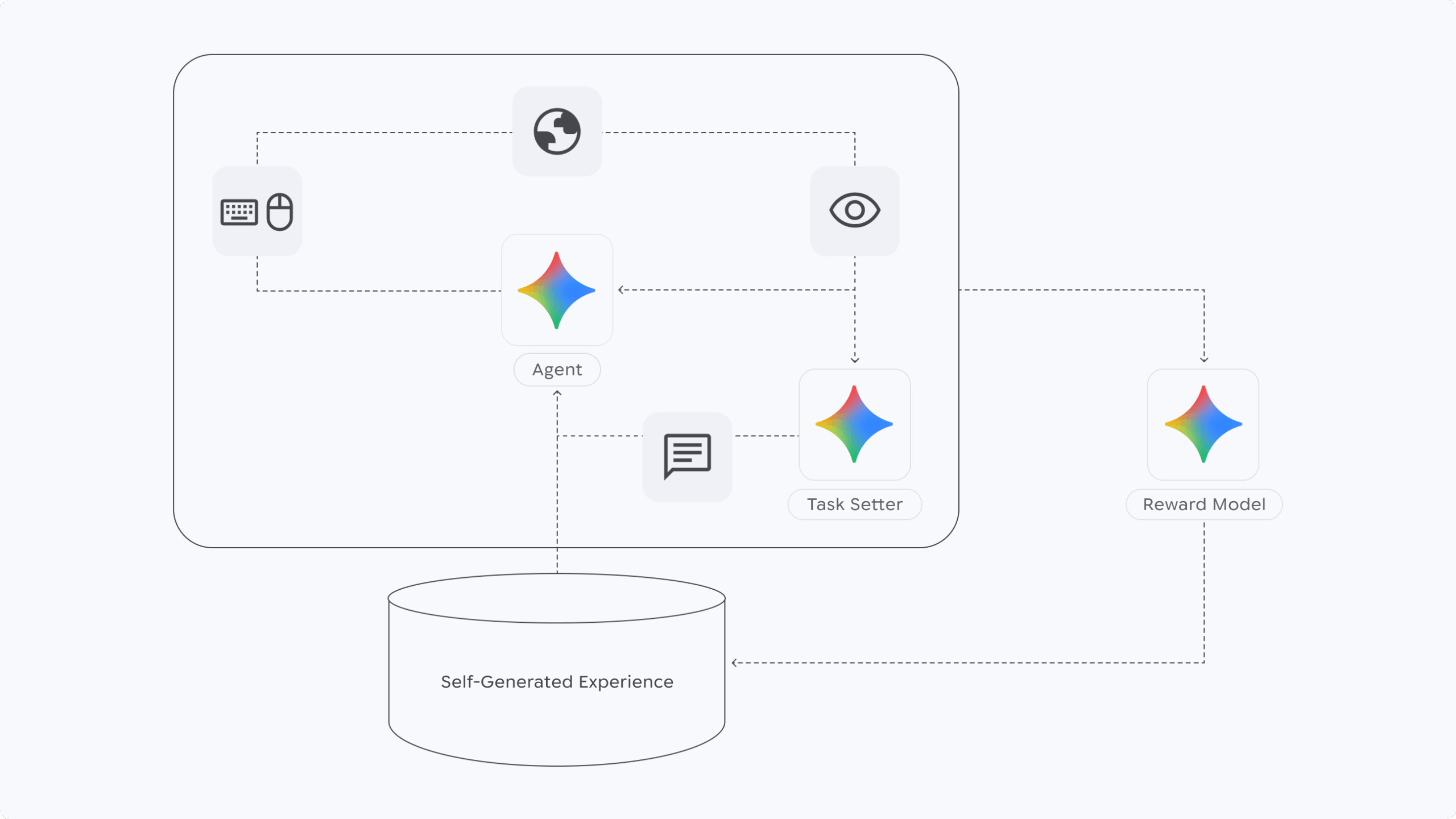 Eine zentrale Neuerung ist die Fähigkeit zur eigenständigen Weiterentwicklung: SIMA 2 kann neue Aufgaben durch selbstgesteuertes Ausprobieren lernen, ohne zusätzliche menschliche Daten. Der Lernprozess beginnt mit Beispielen und Bewertungen, die von Gemini bereitgestellt werden. Danach generiert der Agent eigene Trainingsdaten durch Versuch und Irrtum, bewertet seine Leistung und nutzt diese Erfahrungen für weitere Lernzyklen. Menschliches Eingreifen ist dabei nicht mehr erforderlich.