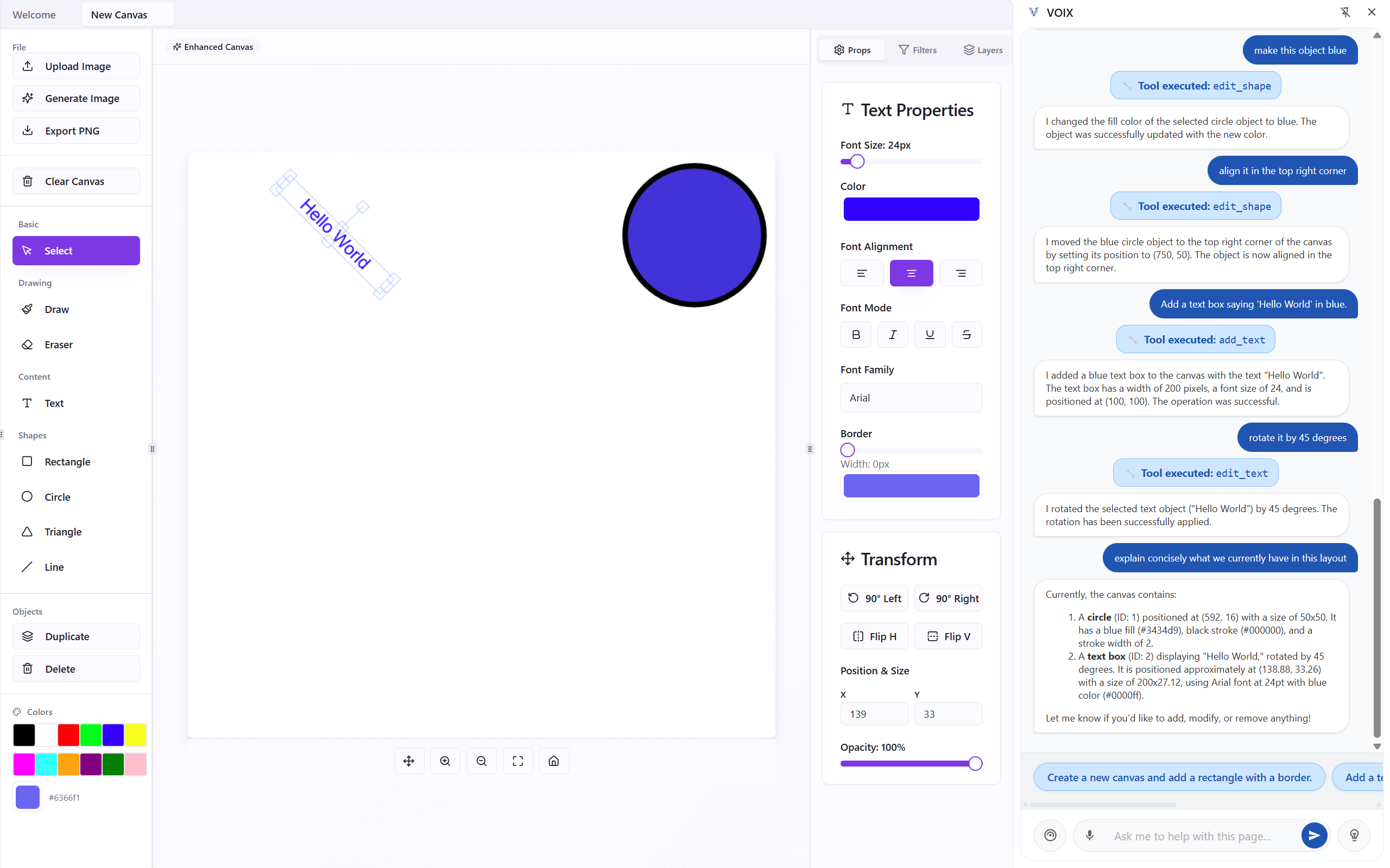 Die entwickelten Anwendungen demonstrieren die Vielseitigkeit des Ansatzes. Eine Demo-App ermöglicht grundlegendes Grafikdesign, bei dem Nutzer auf Objekte klicken und zugleich Sprachbefehle wie „Drehe dies um 45 Grad“ geben können. Eine Fitness-App erstellt vollständige Trainingspläne anhand von Prompts wie „Erstelle einen einwöchigen hochintensiven Trainingsplan für Rücken und Schultern“. Ein Soundscape-Creator verändert Audio-Umgebungen durch Befehle wie „Lass es wie einen Regenwald klingen“, und ein Kanban-Tool legt neue Aufgaben per Prompt an.