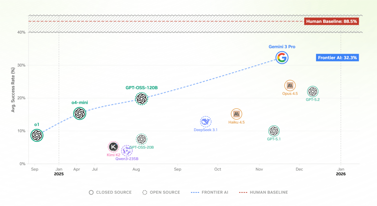 Getestet wurden unter anderem Gemini-3-Pro, GPT-5.2, Claude Opus 4.5 und mehrere Open-Source-Modelle wie Qwen3-235B und DeepSeek-V3.1 auf sieben Manipulationsaufgaben getestet, von einfachem Würfelheben bis zu beidhändiger Koordination.