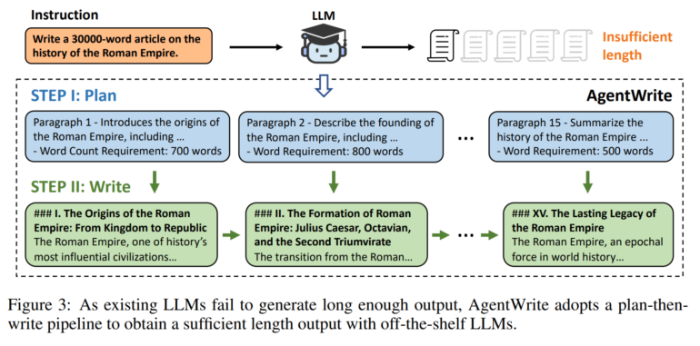 Mit anderen Worten: Die Ausgabebeschränkung liegt an der Knappheit an Beispielen mit langen Ausgaben in bestehenden SFT-Datensätzen. Um dieses Problem zu lösen, stellen die Wissenschaftler "AgentWrite" vor - eine agentenbasierte Pipeline, die lange Generierungsaufgaben in Teilaufgaben zerlegt. So können bestehende LLMs kohärente Ausgaben mit über 20.000 Wörtern erzeugen.
