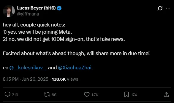 Update: Lucas Beyer bestätigt auf X den Wechsel zu Meta, eine Wechselprämie von 100 Millionen US-Dollar sei dafür nicht geflossen. Möglicherweise handelte es sich bei Altmans Behauptung um ein strategisches Manöver, um Metas Rekrutierungsprämien in die Höhe zu treiben.