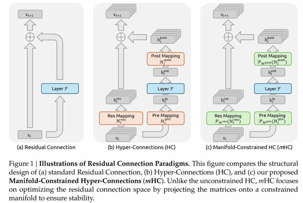 Das Problem laut den Forschern: Diese Erweiterungen bringen zwar Leistungsgewinne, destabilisieren aber das Training bei größeren Modellen. Die Forscher von Deepseek haben nun mit "Manifold-Constrained Hyper-Connections" (mHC) eine Lösung vorgestellt, die beide Vorteile vereinen soll.
