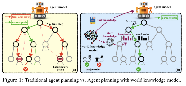 Agenten, die auf großen Sprachmodellen wie GPT-4 basieren, zeigen immer wieder Potenzial bei der Planung und Lösung komplexer Aufgaben. Allerdings arbeiten sie oft nach dem Trial-and-Error-Prinzip und "halluzinieren" realitätsferne Aktionen. In einer neuen Arbeit untersuchen Forschende der Zhejiang Universität und von Alibaba, ob ein externes, gelerntes "World Knowledge Model" (WKM), das KI-Agenten mit zusätzlichem Wissen ausstattet, die Leistung der Modelle verbessern kann.