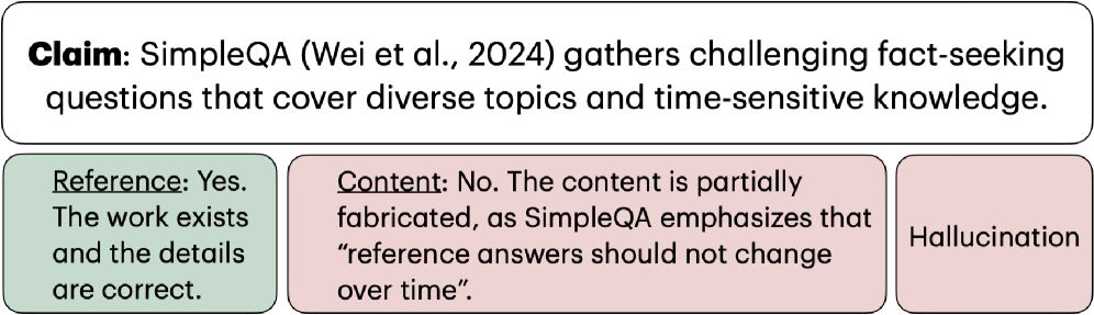 Diese Unterscheidung offenbart ein subtiles, aber häufiges Versagen: Ein Modell kann eine passende Quelle zitieren und dennoch Details fabrizieren, die diese Quelle gar nicht belegt. Die Forscher nennen als Beispiel eine Behauptung über den SimpleQA-Benchmark, bei der die Referenz zwar korrekt war, der Inhalt aber teilweise erfunden.