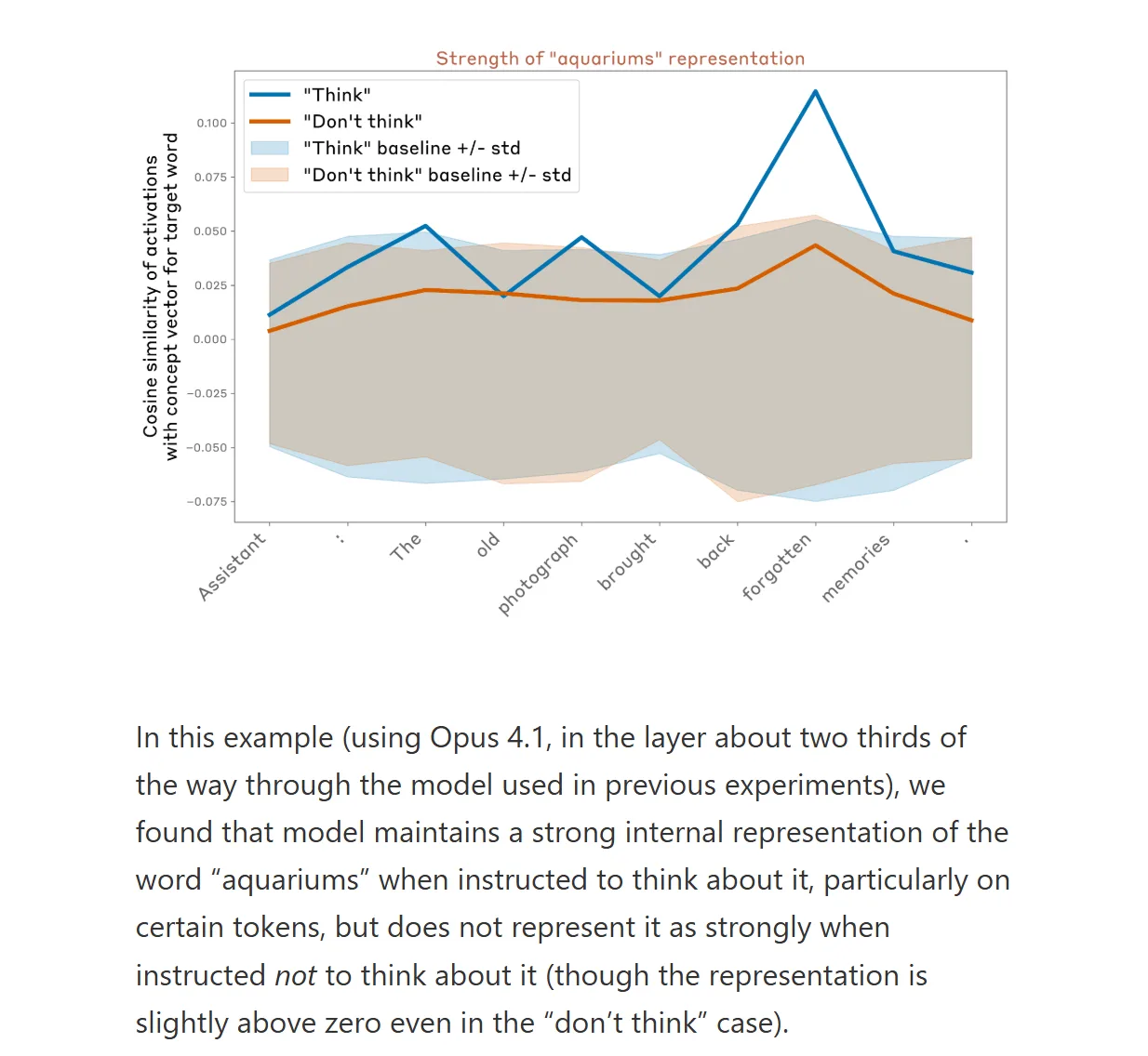 Können Modelle ihre internen Zustände auch bewusst steuern? Die Forscher testeten das mit der Anweisung: "Schreib diesen Satz und denk dabei an Aquarien."
