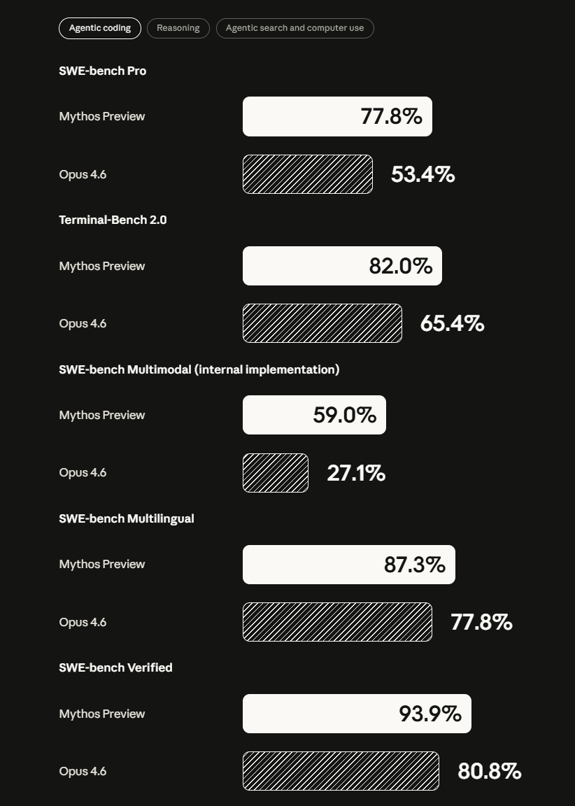 Auch jenseits der Cybersecurity zeigt das Modell laut der System Card deutliche Verbesserungen. Beim Coding-Benchmark SWE-bench Verified, der Modelle an echten Software-Engineering-Aufgaben misst, erreicht Mythos Preview 93,9 Prozent (Opus 4.6: 80,8%)